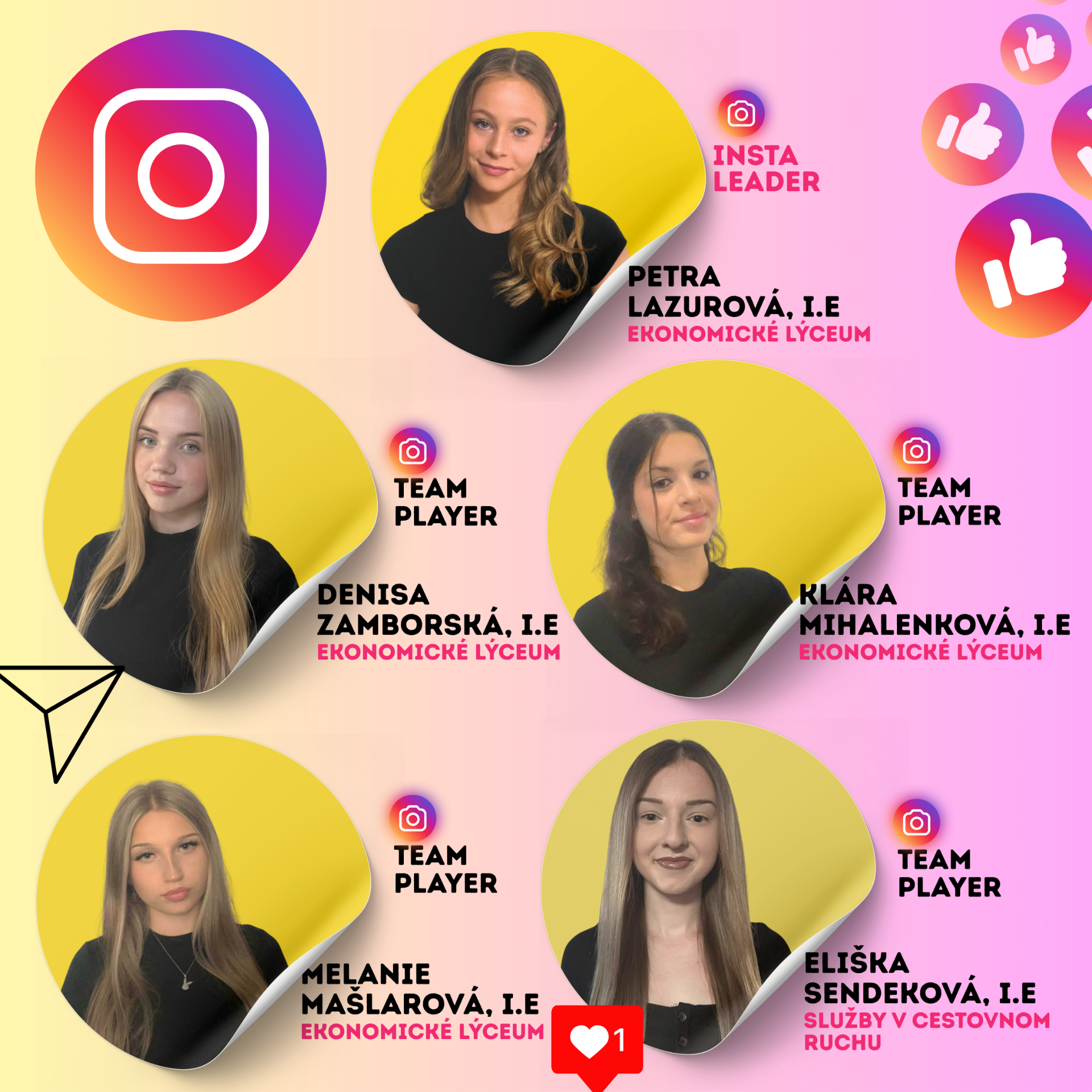 Sme tí, čo stoja za fotkami, príbehmi a grafikami, ktoré vidíš na školskom Instagrame. Zastavujeme momenty, dávame im štýl a posielame ich von do sveta. Každý príspevok má svoj dôvod – niekedy ukáže úspech, inokedy len obyčajný pekný deň na chodbe.